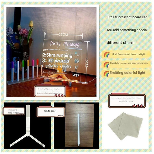 Erasable DIY acrylic transparent message writing board, stall, LED blackboard, illuminated billboard, fluorescent board