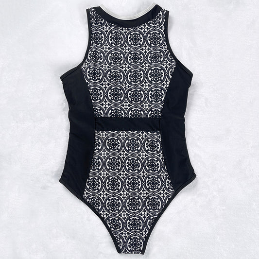 Adél fekete–fehér retro mintás, cipzáras egyrészes női fürdőruha