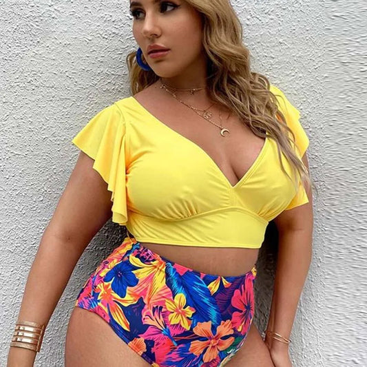 Fatime Női Plus Size Kétrészes Fürdőruha Szett – Egyszínű és Virágmintás