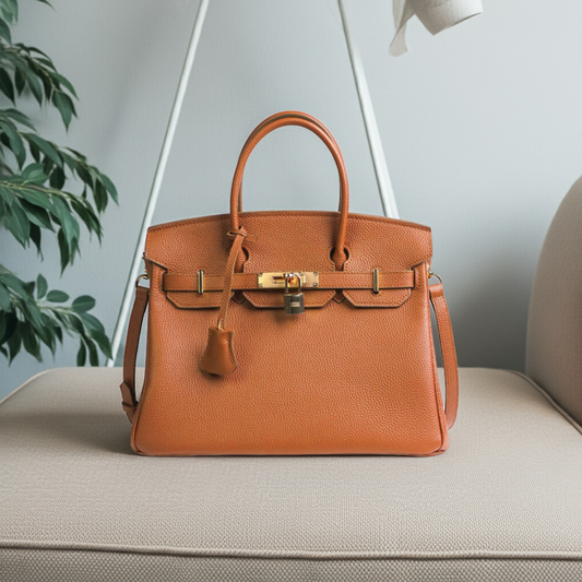 Klasszikus, valódi bőrből készült női kézitáska – aranybarna, méret 35*18*27
