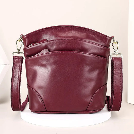 ElfogyottValódi bőr női bucket – piros, borvörös