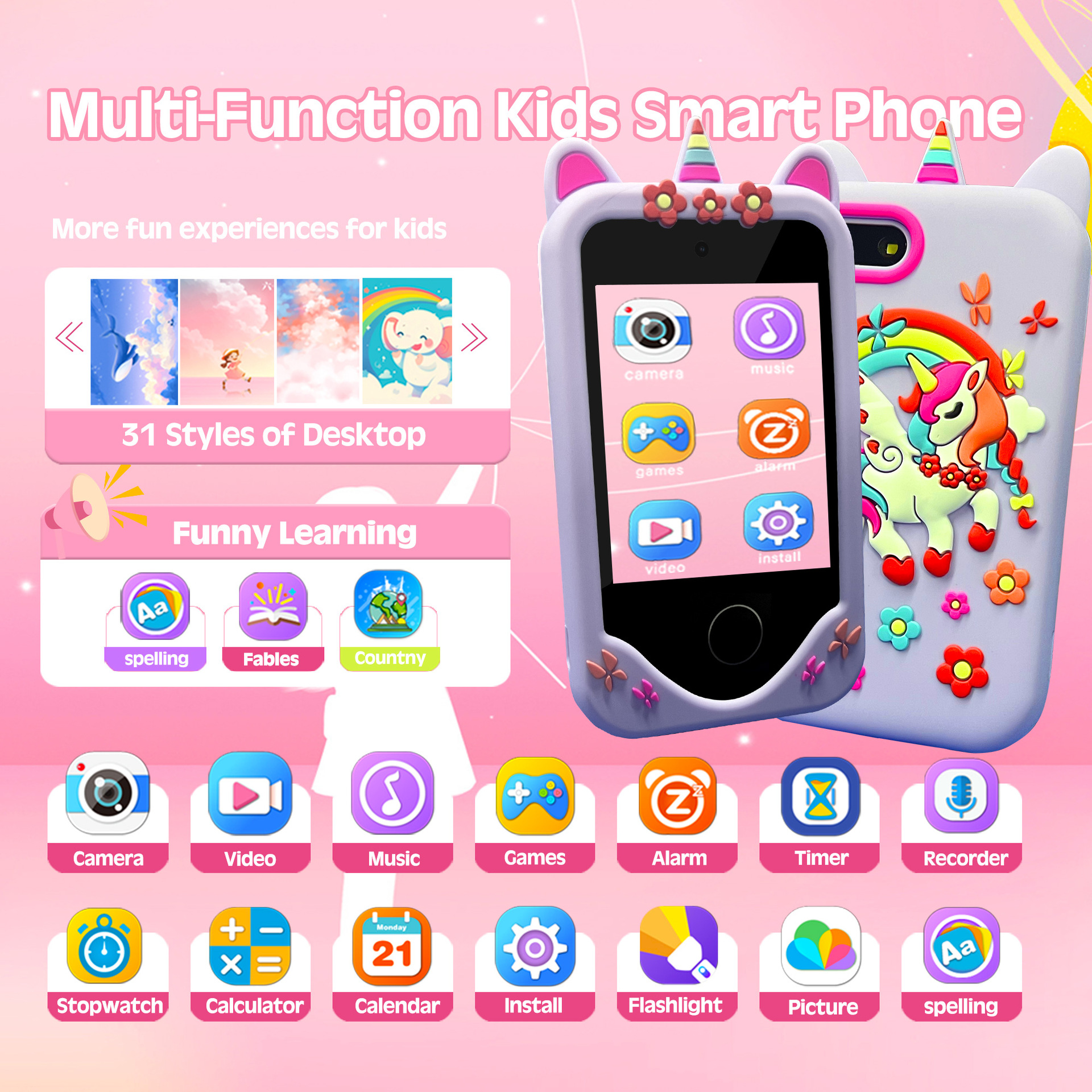 gyerek mobiltelefon, unikornis játék telefon, érintőkijelzős gyerek játék, gyerek kamera játék, fotózó gyerek telefon, ajándék gyerekeknek