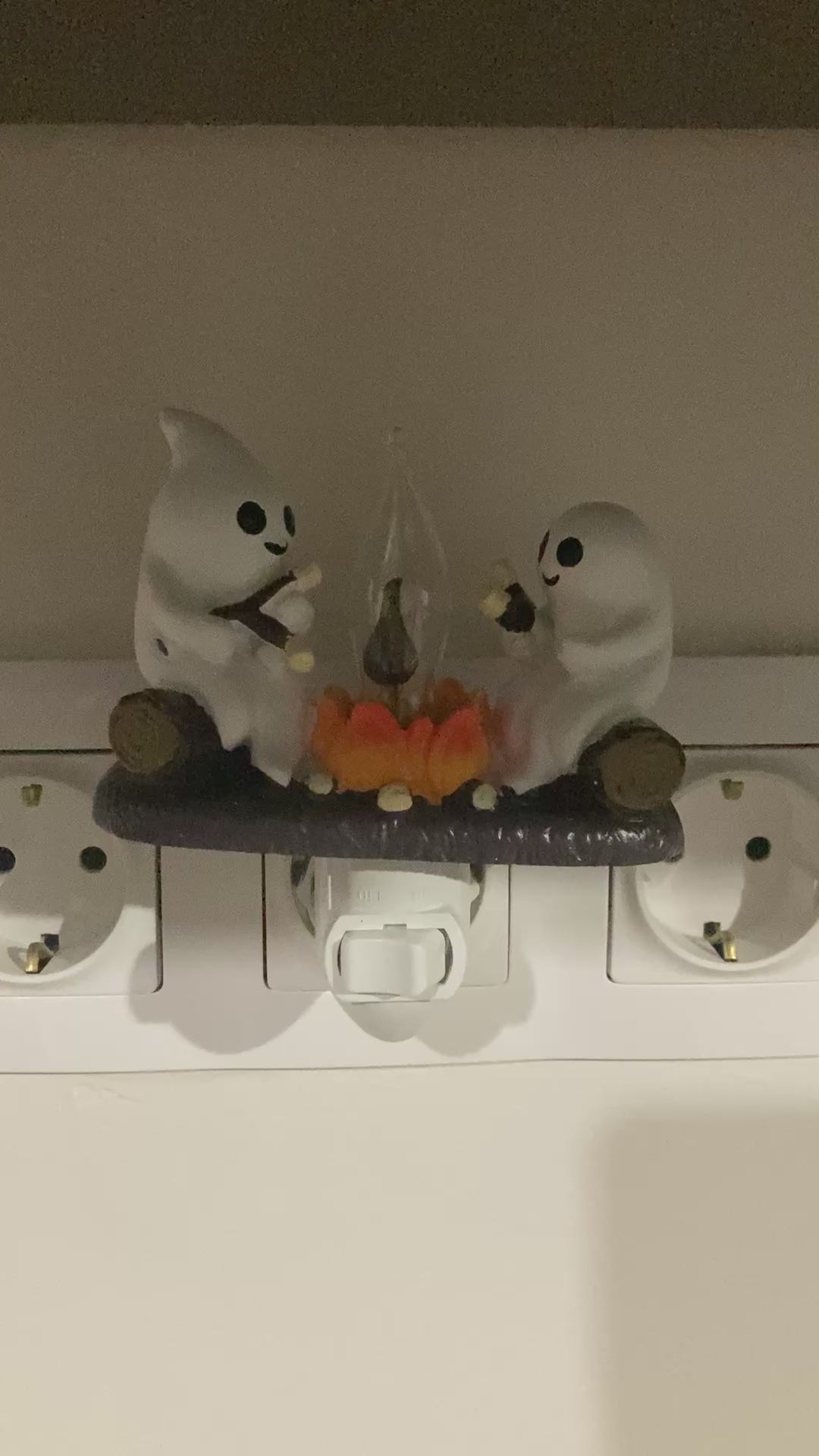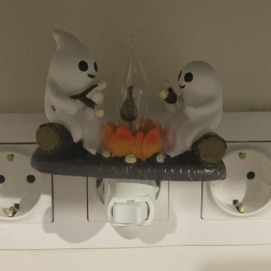 ghost campfire nightlight, villódzó éjjeli fény, tábortűz hatású lámpa, szellemes dekor lámpa, halloween éjjeli fény, hangulatlámpa