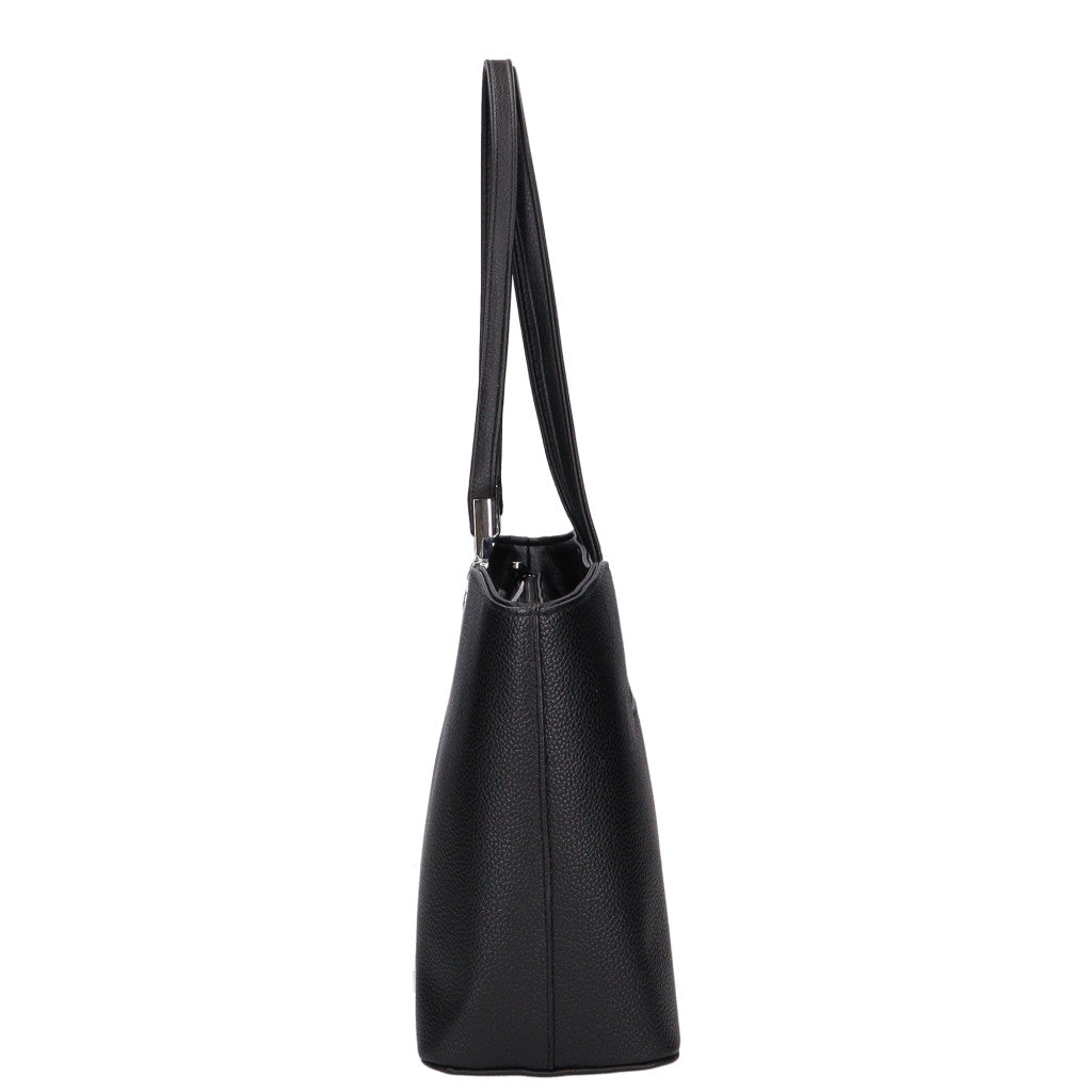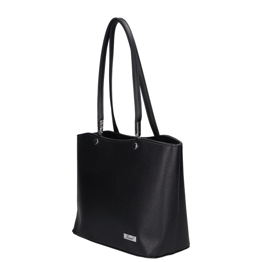 Karen rostbőr női táska, női válltáska rostbőr, elegáns fekete női táska, praktikus női táska mindennapokra, nagyobb méretű női táska
