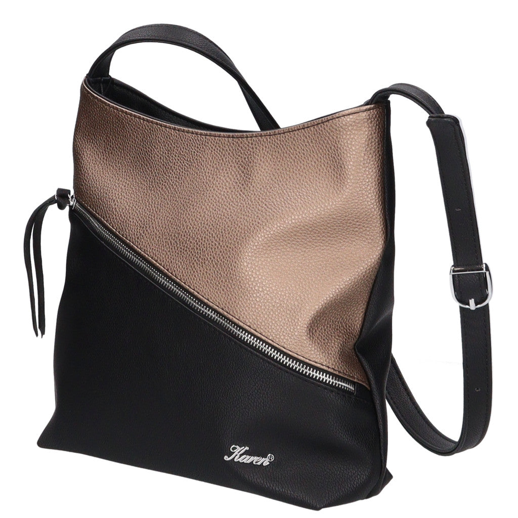 Az állítható vállpánt (60–110 cm) lehetővé teszi, hogy kényelmesen viselhesd vállon vagy keresztben. A táska előlapján diszkréten elhelyezett Karen logó stílusos megjelenést kölcsönöz.