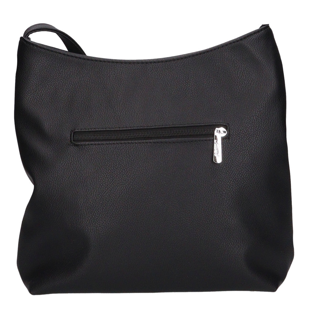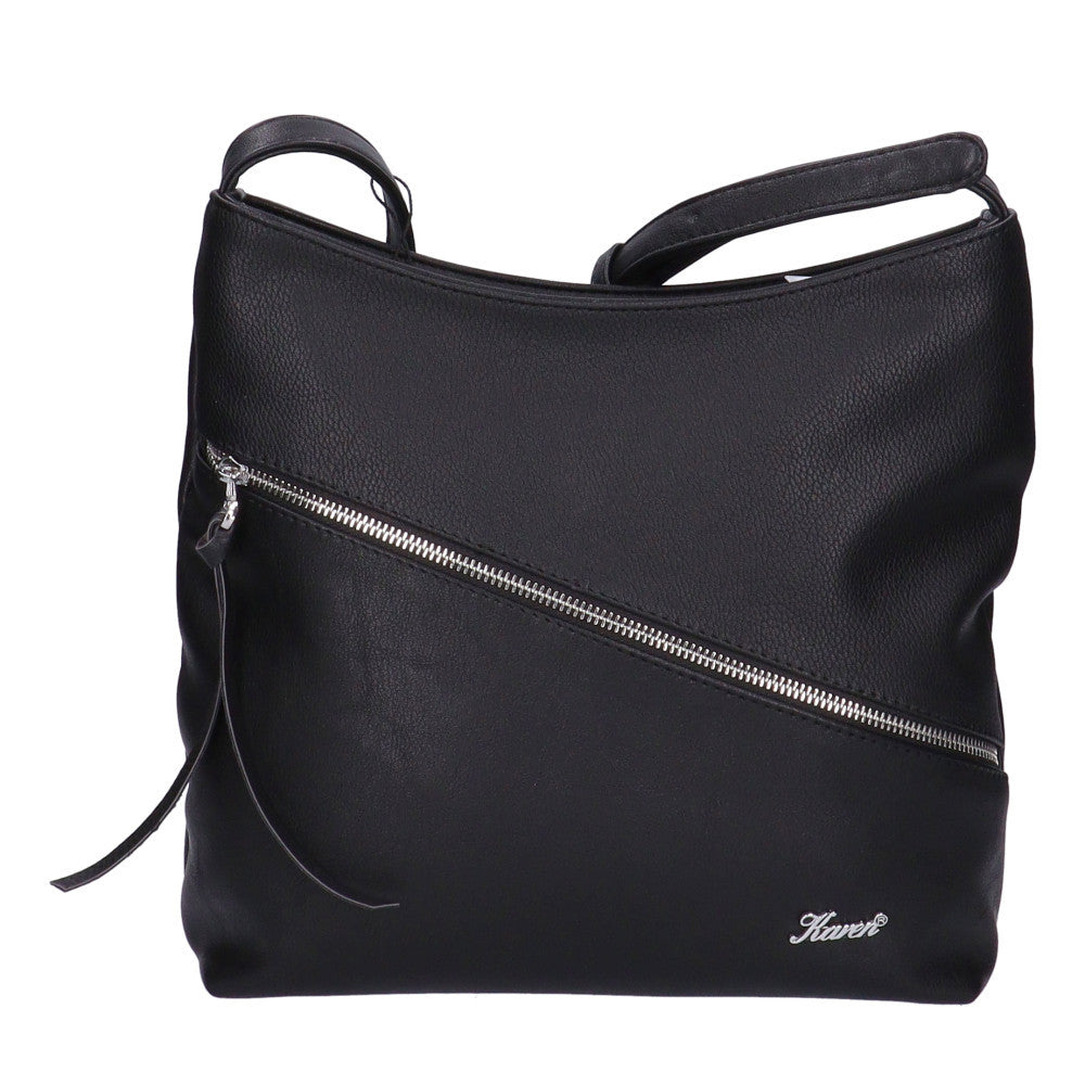 Karen rostbőr táska, női válltáska fekete, keresztpántos női táska, elegáns rostbőr válltáska, közepes méretű női táska, Karen fekete női táska