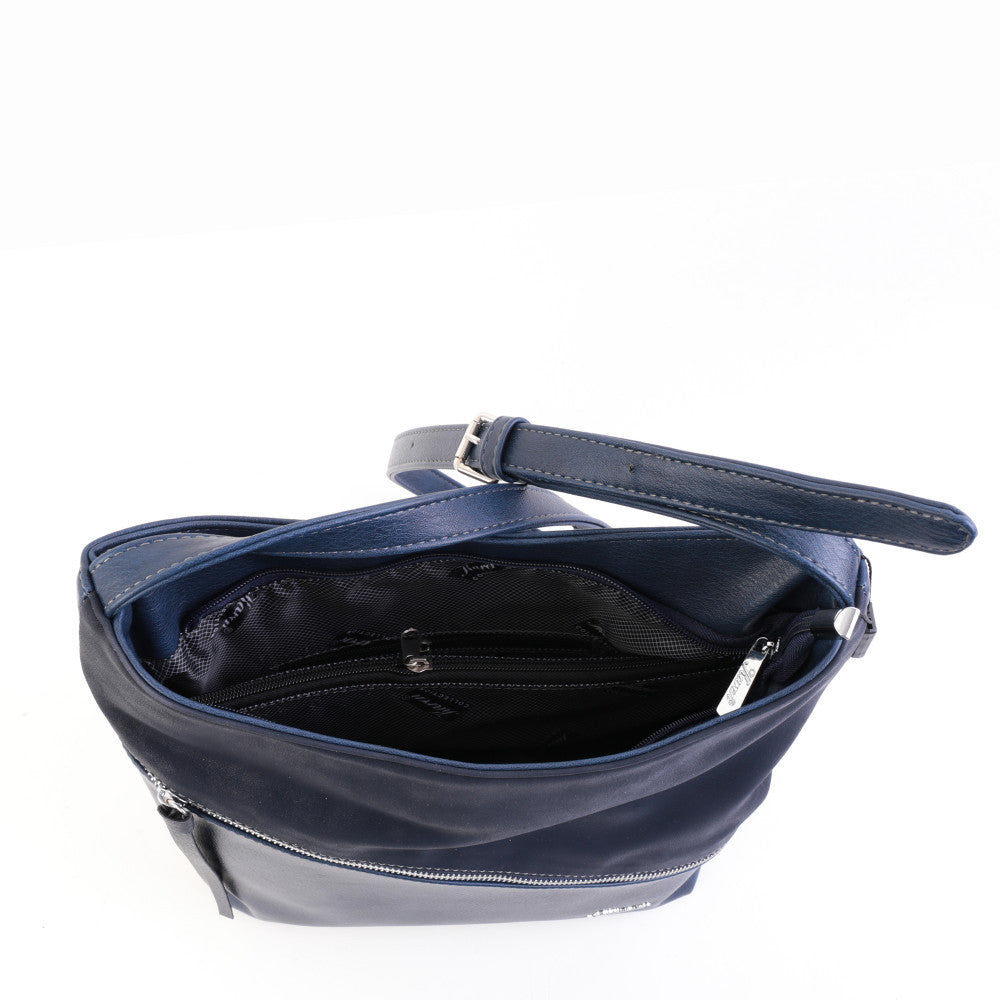 A táska cipzáras fő rekesszel záródik, belül egyterű, kiegészítve egy belső cipzáras zsebbel és mobiltartóval, így könnyedén elférnek benne a legfontosabb holmik. A hátoldalon található cipzáras zseb további kényelmet és gyors hozzáférést biztosít.